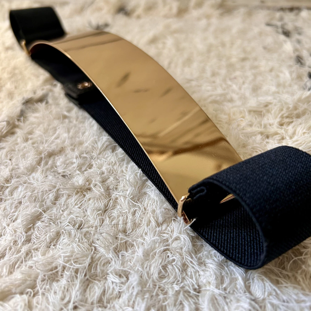 - Faja elastizada con parte delantera rigida color dorado.